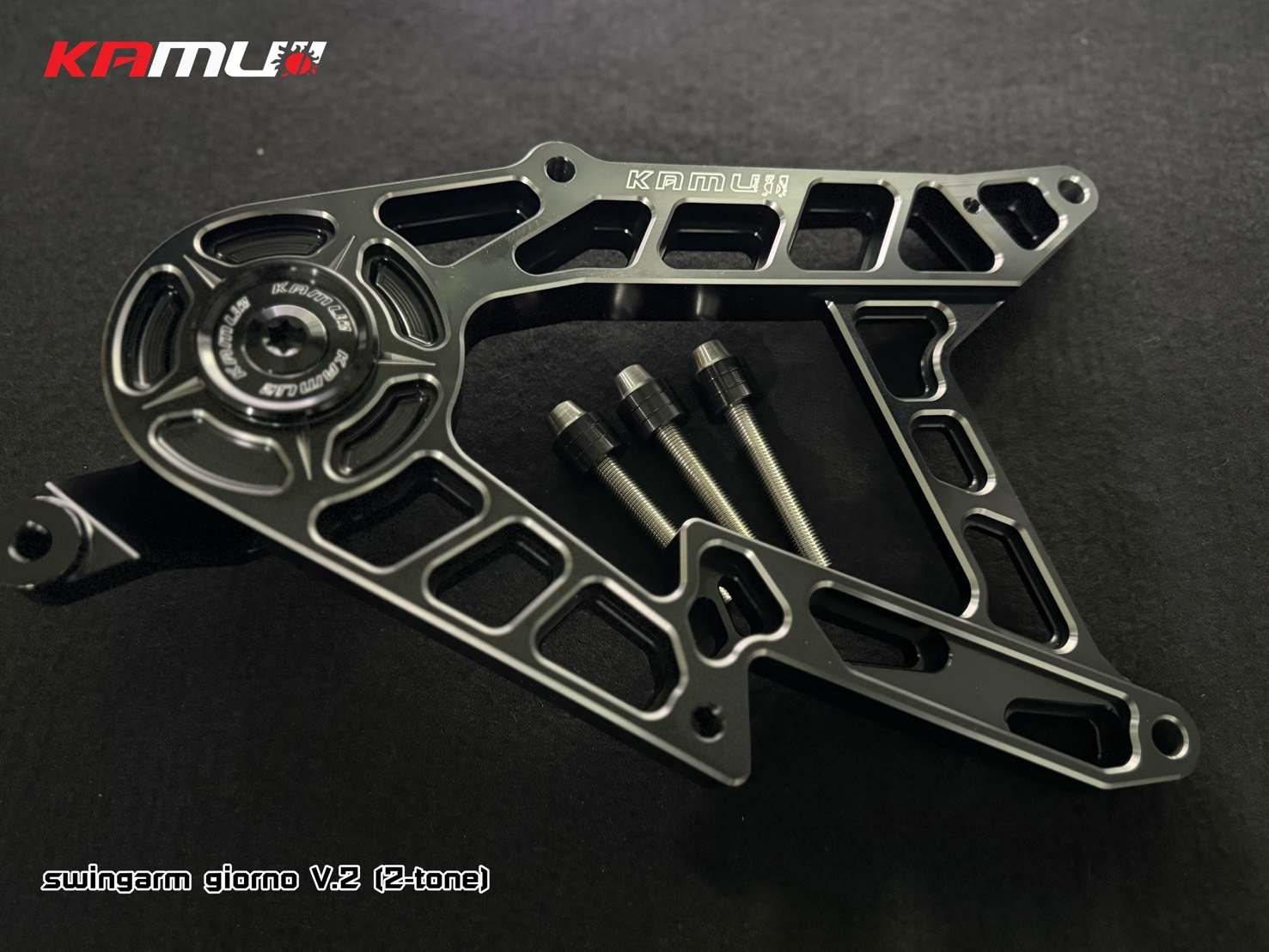 สวิงอาร์ม CNC V.2 สายฟ้า ตรงรุ่น GIORNO+ สีดำ-เทา ฝาดำ